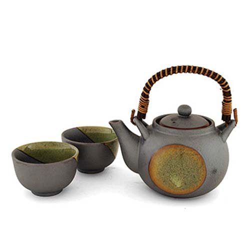 Cool Nights. The beautifully handpainted gold moon adds to this series' zen appeal. Create a perfectly elegant mood for entertaining. Gift set includes one tea pot and two tea cups Tea Pot is 4.75 inches tall, Tea Cups are 2.25 inches tall with a 3.5 inch diameter Hand painted Japanese stoneware Comes in a sophisticated black gift box NOT